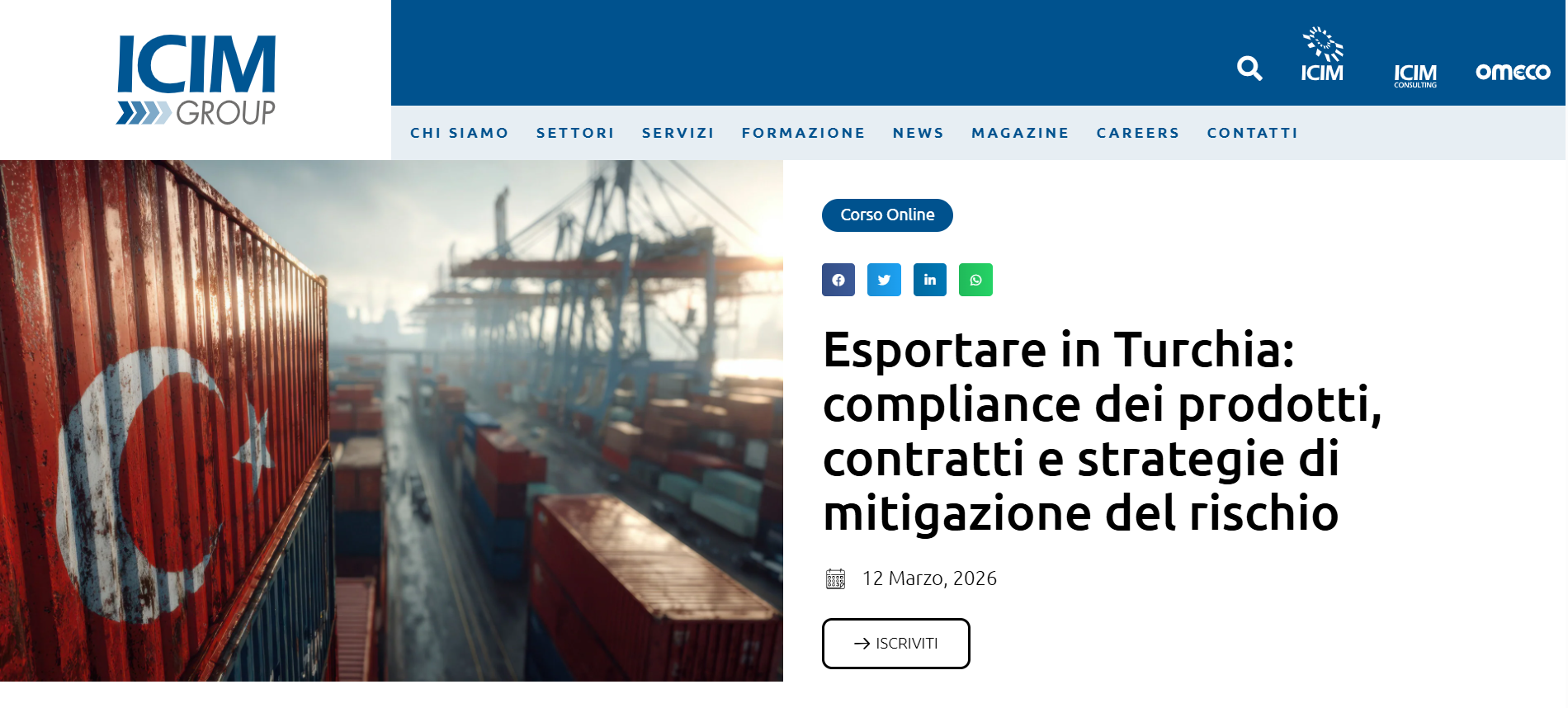 Il 12 marzo 2026 l’Avv. Hanz Giovanni Chiappetta parteciperà in veste di relatore all’incontro “ESPORTARE IN TURCHIA: COMPLIANCE DEI PRODOTTI, CONTRATTI E STRATEGIE DI MITIGAZIONE DEL RISCHIO” organizzato da Lawtelier Avvocati Associati insieme a ICIM Group, con la collaborazione dello Studio legale Moroğlu Arseven di Istanbul.